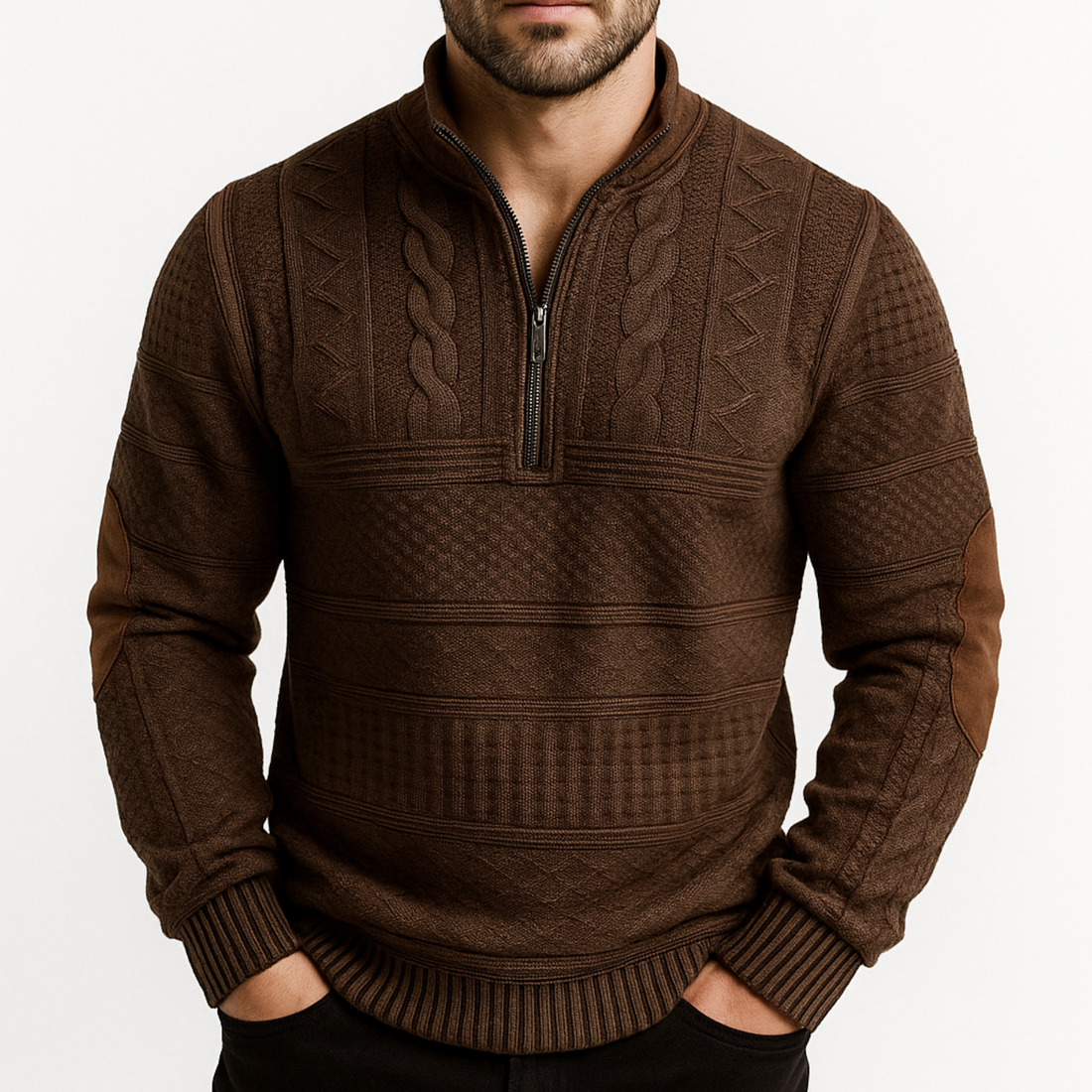 Adrian Strickpullover mit Reißverschlussdetail - Braun