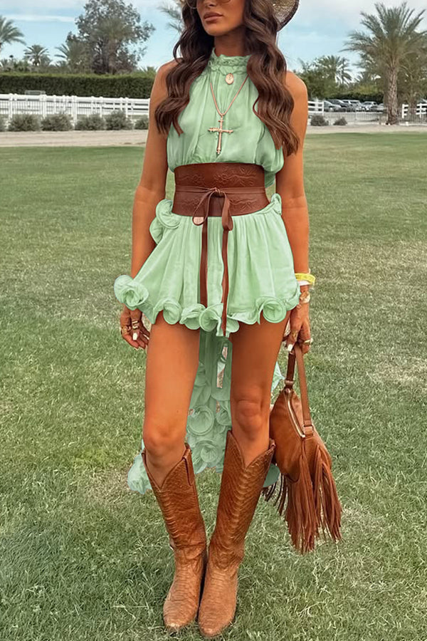 Romantic Drama – Ausgestelltes Top mit welligen Volants und Nackenbindung