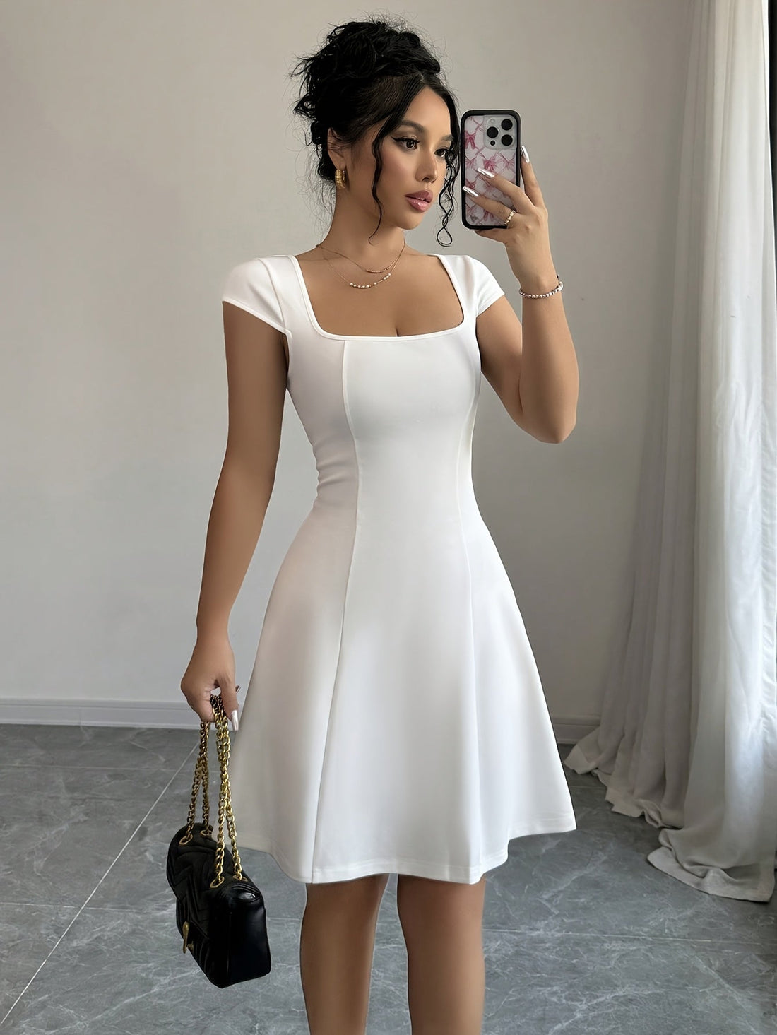 Sommerliches A-Linien-Kleid mit kontrastierenden Trägern