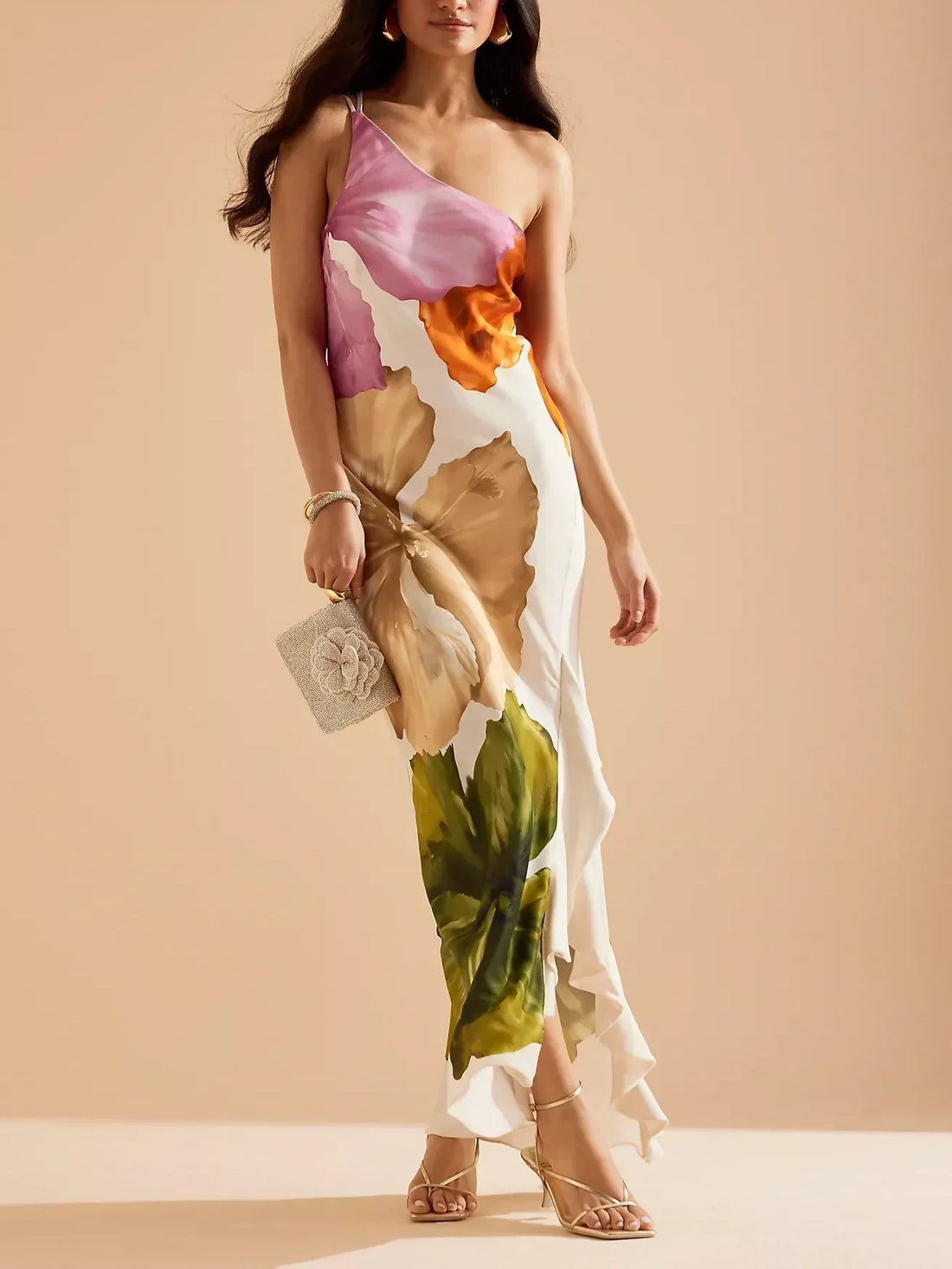 Ein-Schulter Maxikleid mit Spaghettiträgern