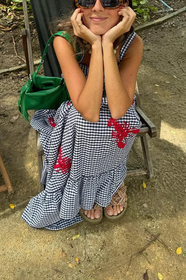 Langes Karokleid mit gestickten Garnelen