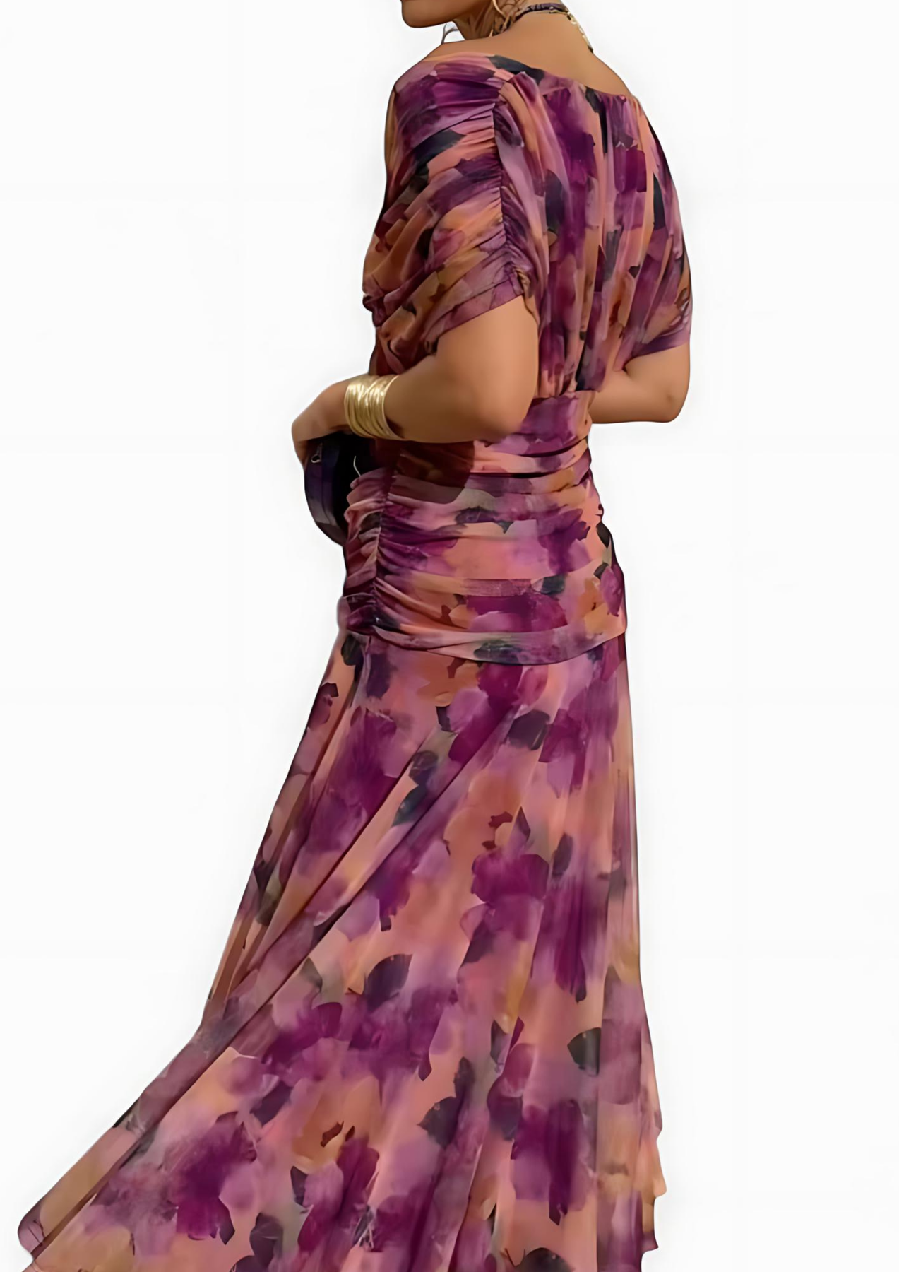 Erlebe mühelosen Stil mit dem Aure Maxikleid. Zartes Fantasie-Blumenmuster trifft auf eine fließende Silhouette, die deine Figur schmeichelt und bei jedem Schritt anmutig mitschwingt – perfekt für festliche Anlässe oder besondere Dinner-Abende.
