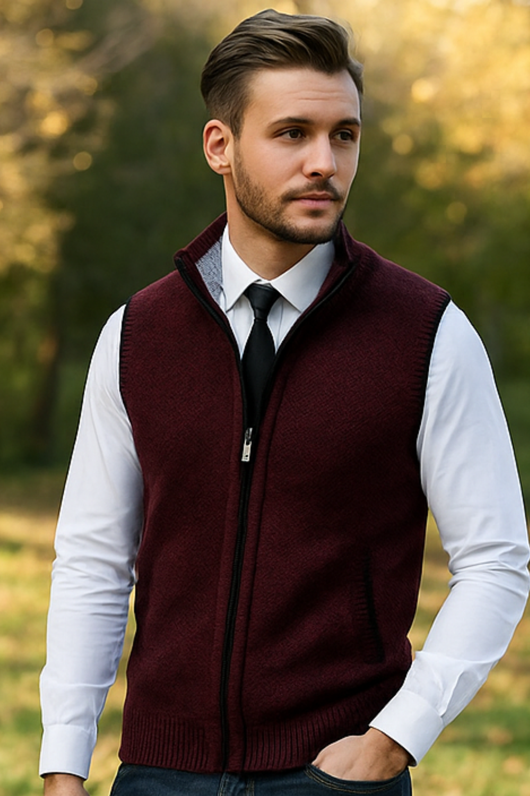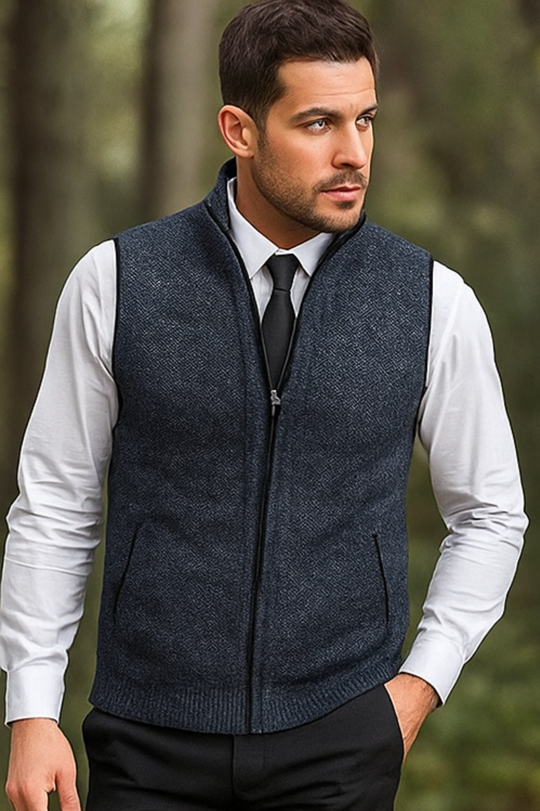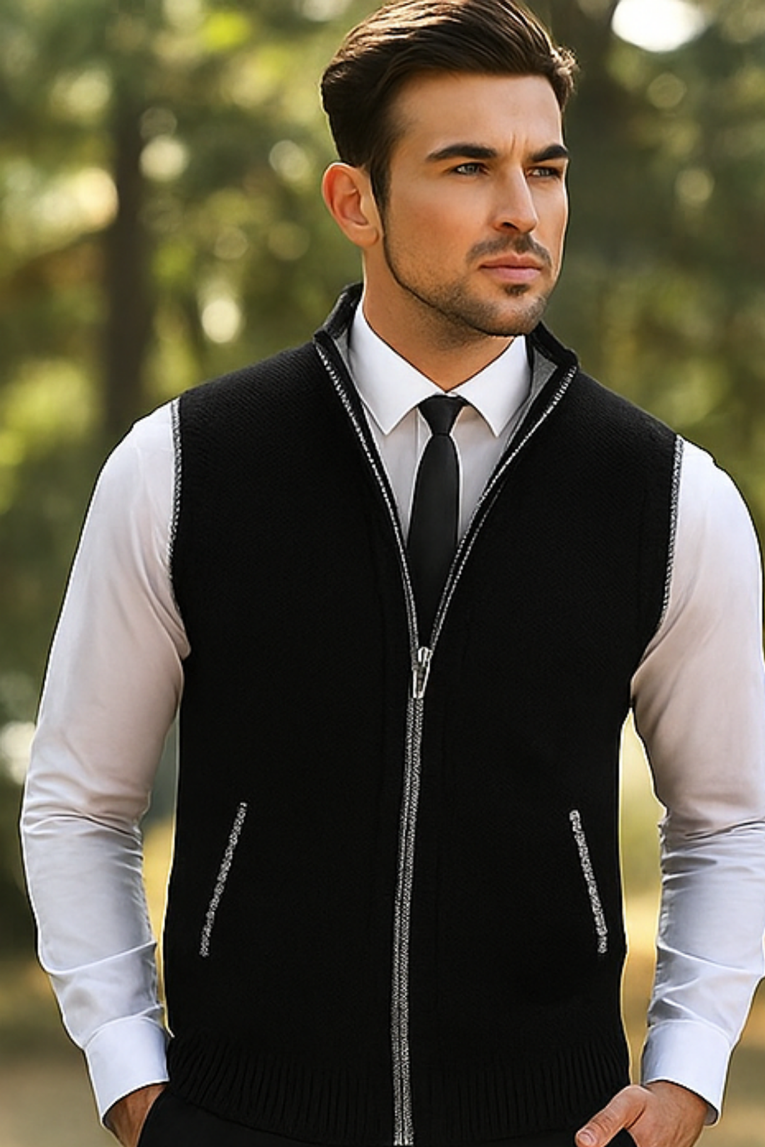 Gerald Strickweste mit Reißverschluss - Schwarz