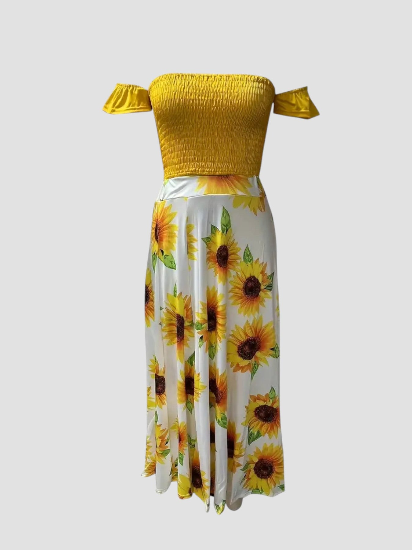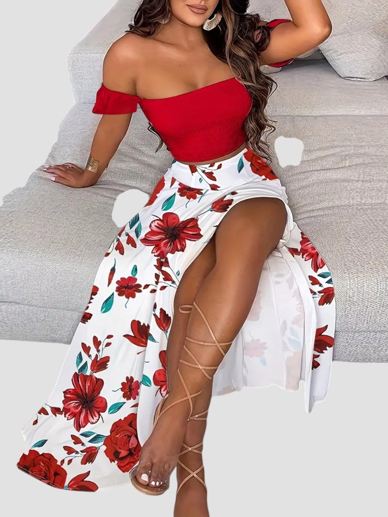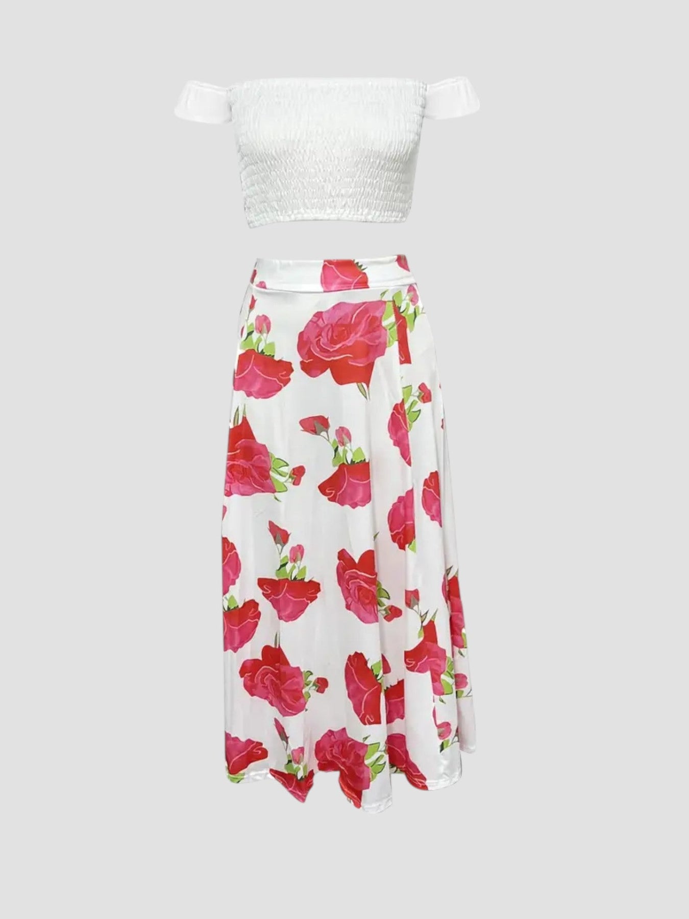 Strahle an sonnigen Tagen mit dem Assunta Set – ein feminines Ensemble, das modernes Design mit Komfort und Leichtigkeit vereint. Das trendige Bandeau-Top und der fließende Midirock mit lebendigem Print sorgen für einen Look, der stilvoll und selbstbewusst ist.