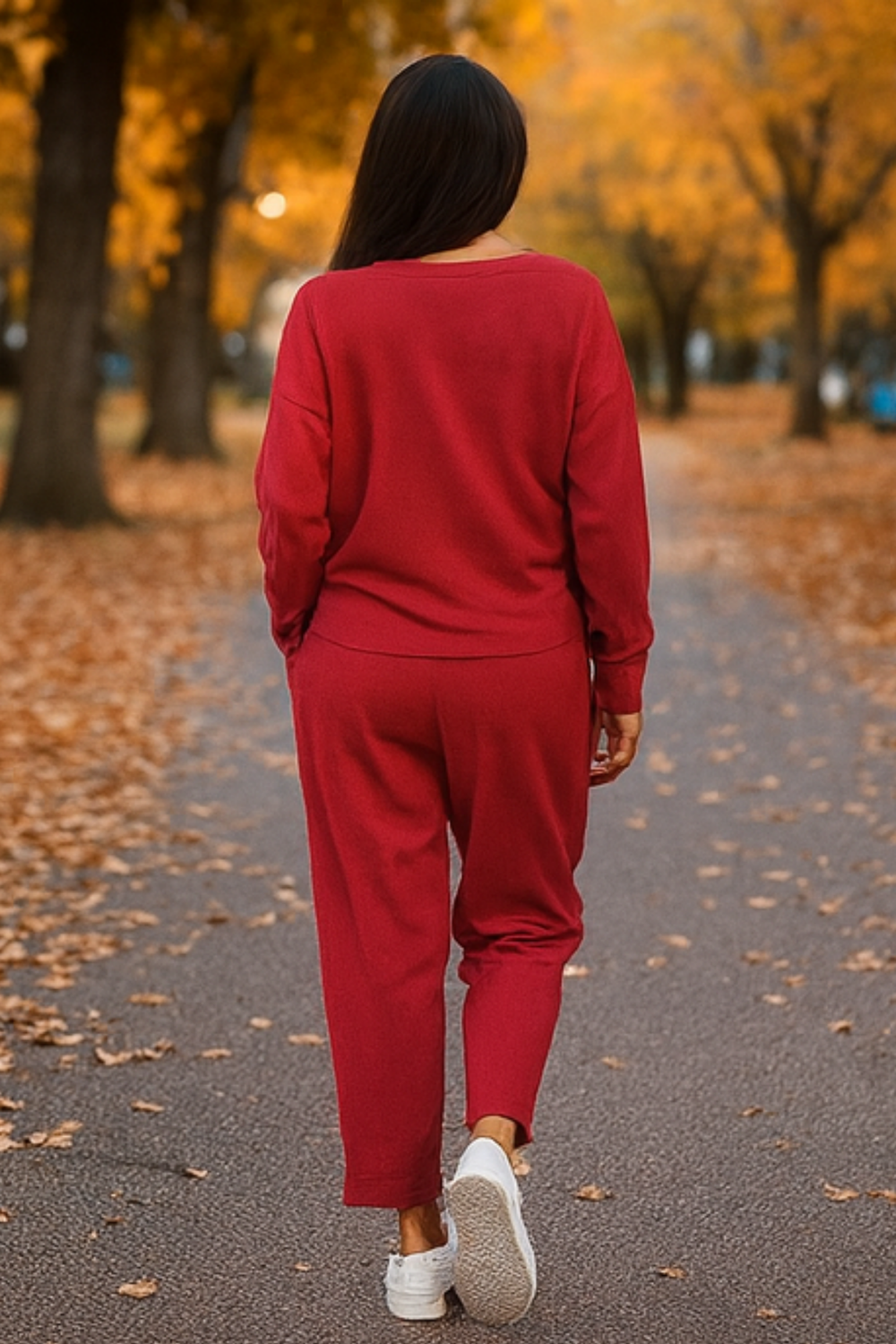 Alie Zweiteiler mit Rundhals & Langarm - Rot