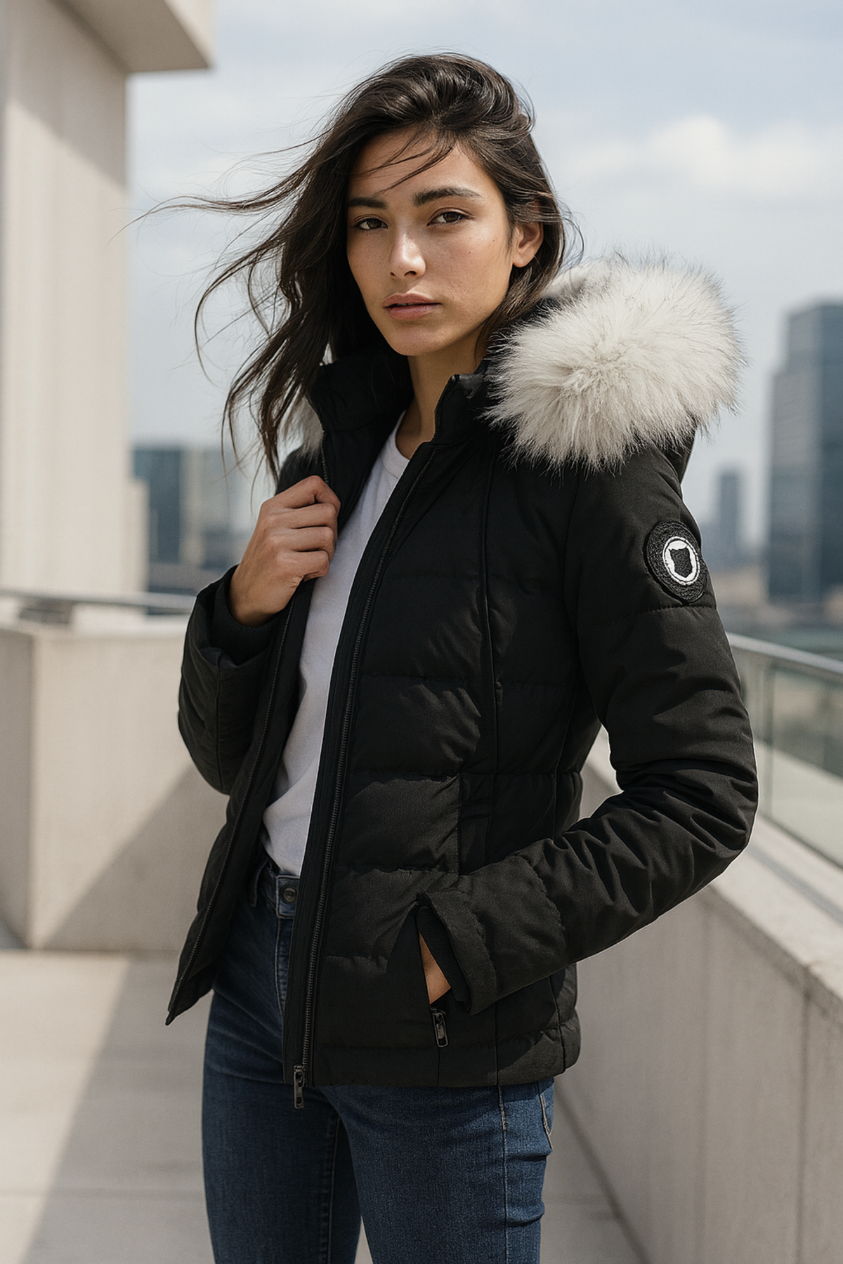 Die Freya Doudoune aus der neuen Comme Des Loups Kollektion 2025 verbindet Technologie mit Mode. Dank integrierter Heizfunktion, abnehmbarer Kunstfellkapuze und femininer Passform hält sie dich warm, elegant und frei beweglich – perfekt für kalte Tage in der Stadt oder im Freien.
