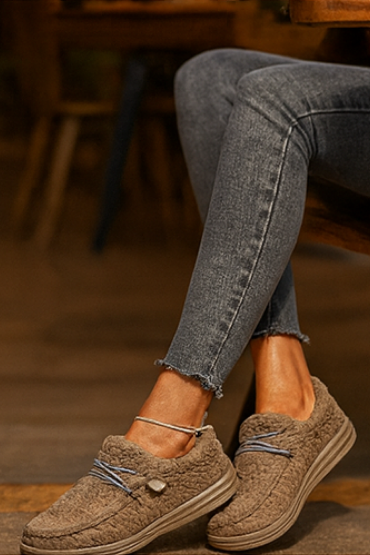 Die Winnie Teddy Slippers bringen kuscheligen Komfort in deinen Alltag. Inspiriert von der beliebten Wendy „Cozy Timber Wolf“ Slipper, vereinen sie weiches Material mit praktischer Alltagstauglichkeit – perfekt für drinnen und stabil genug für kurze Wege nach draußen.