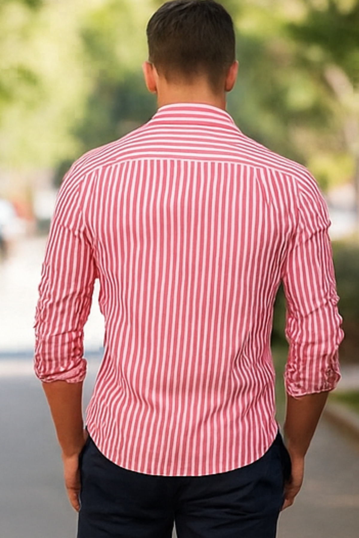 • Klassisches Streifenmuster – Verleiht eine schlanke, elegante Silhouette.