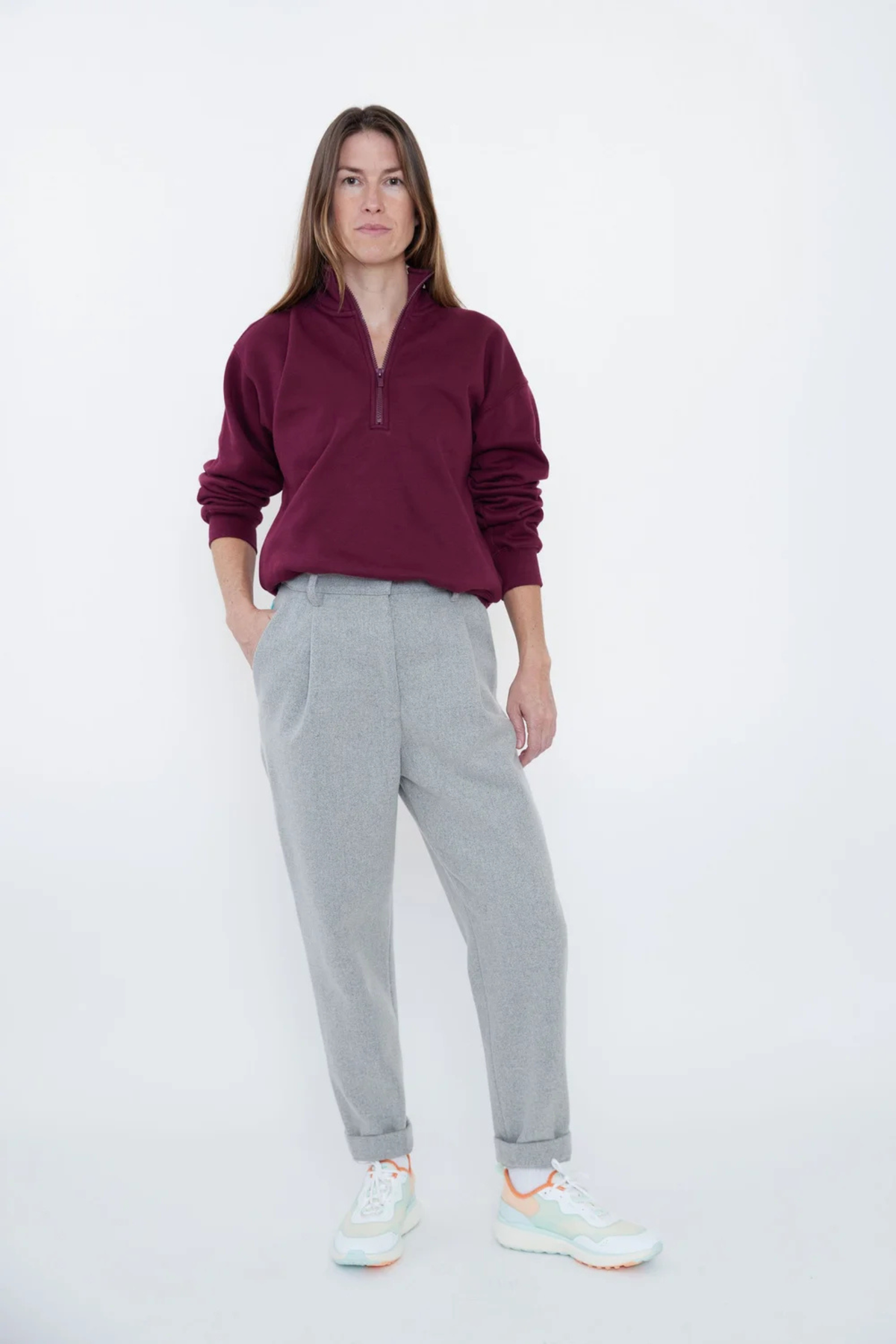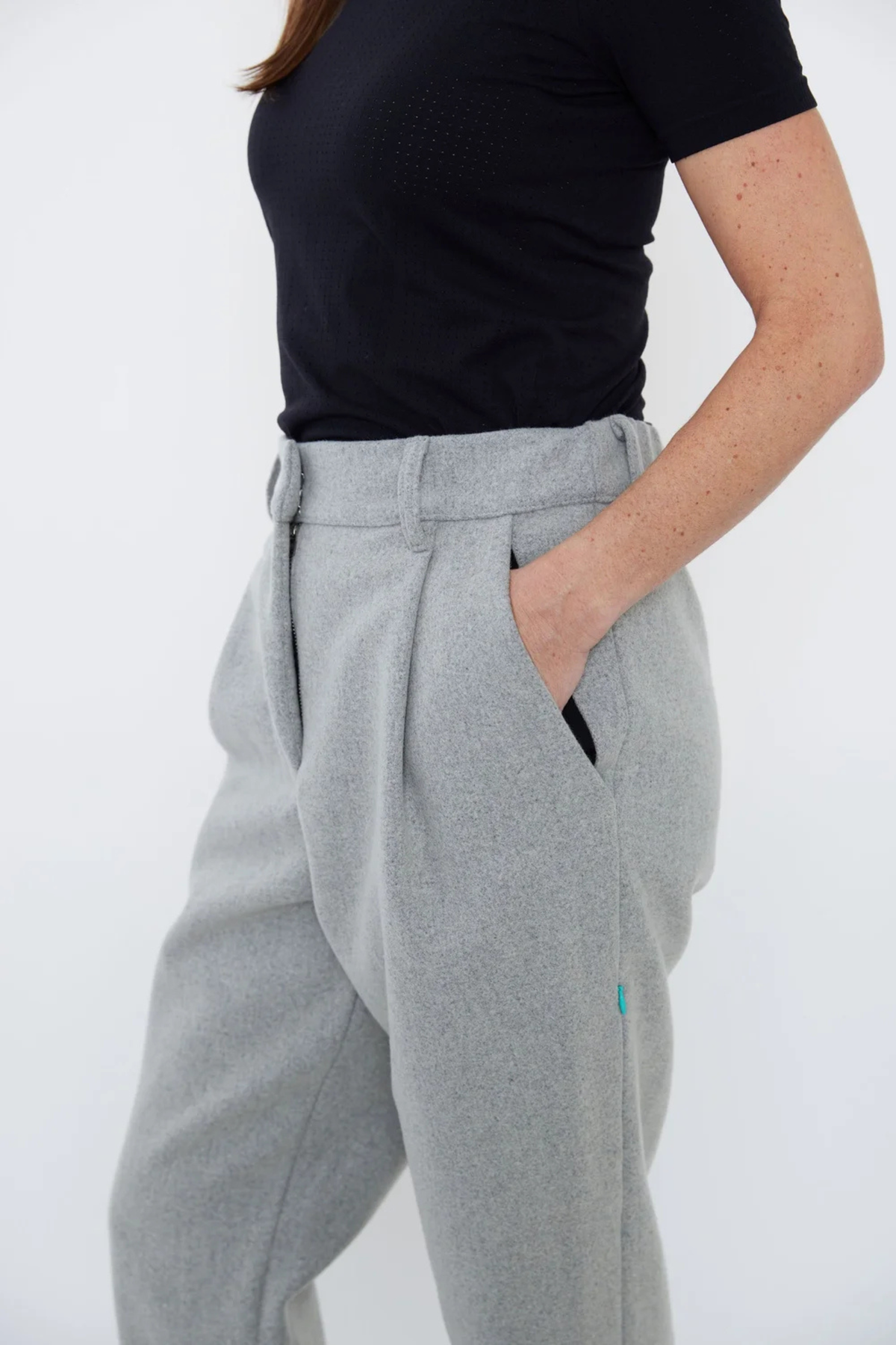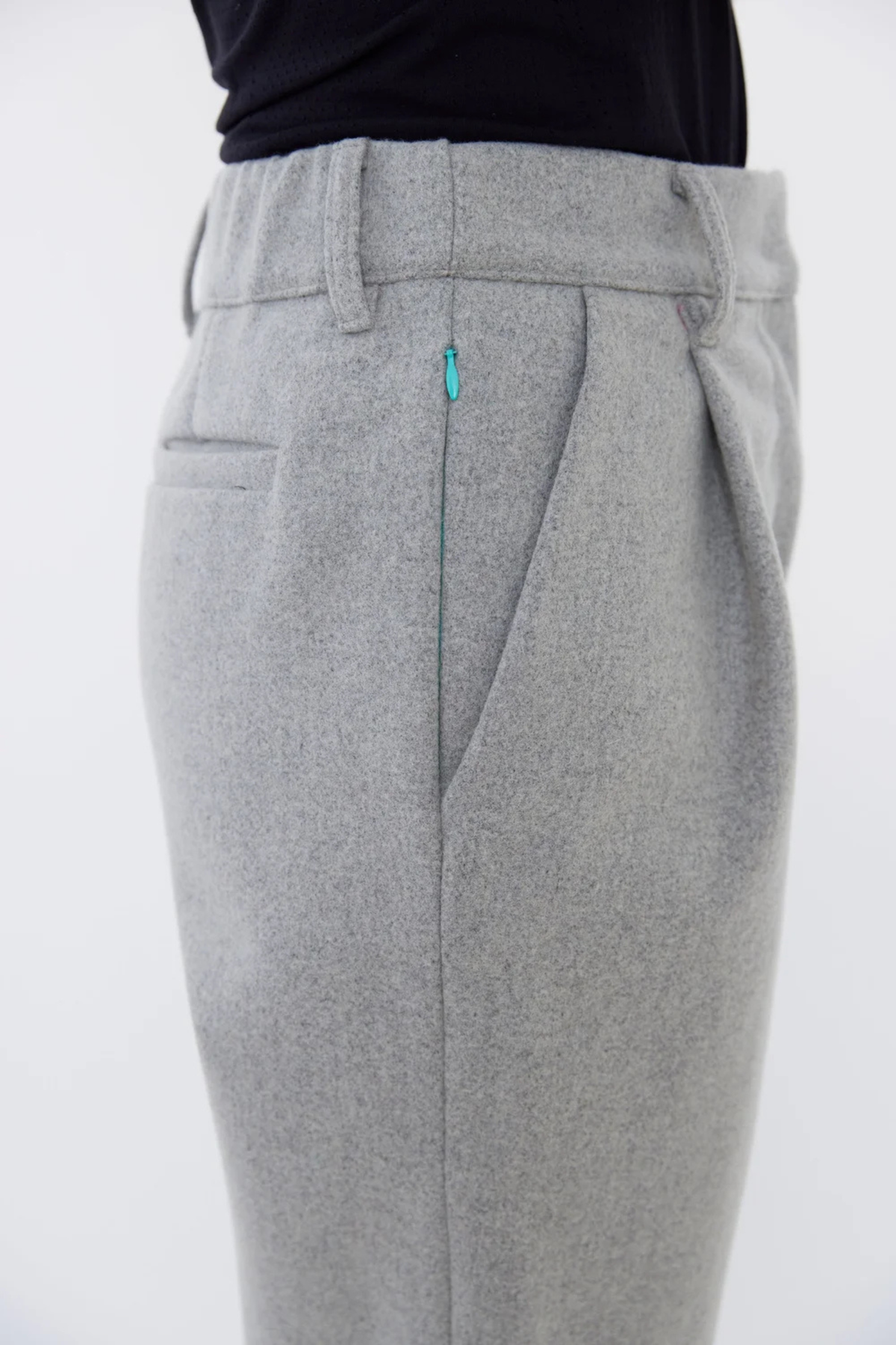 Die Leona Hose kombiniert maßgeschneiderte Raffinesse mit funktionaler Flexibilität. Ihr halbhoher Bund mit elastischem Rückenteil sorgt für Komfort, während der edle Wollmix für eine gepflegte Optik steht – ideal für Golf, Freizeit oder Business.