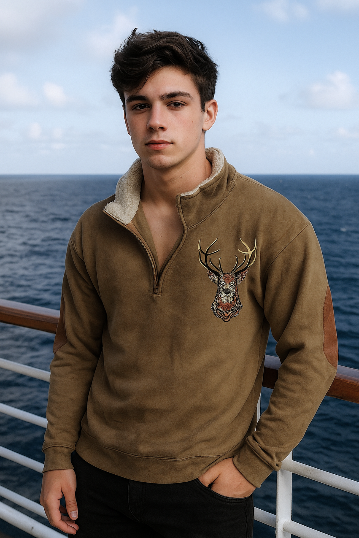 Der Kristoff Pullover ist dein perfekter Begleiter für kühle Tage und Outdoor-Momente. Mit weicher Fleece-Innenseite, robusten Details und einem dezenten Hirschmotiv vereint er Komfort und Charakter.