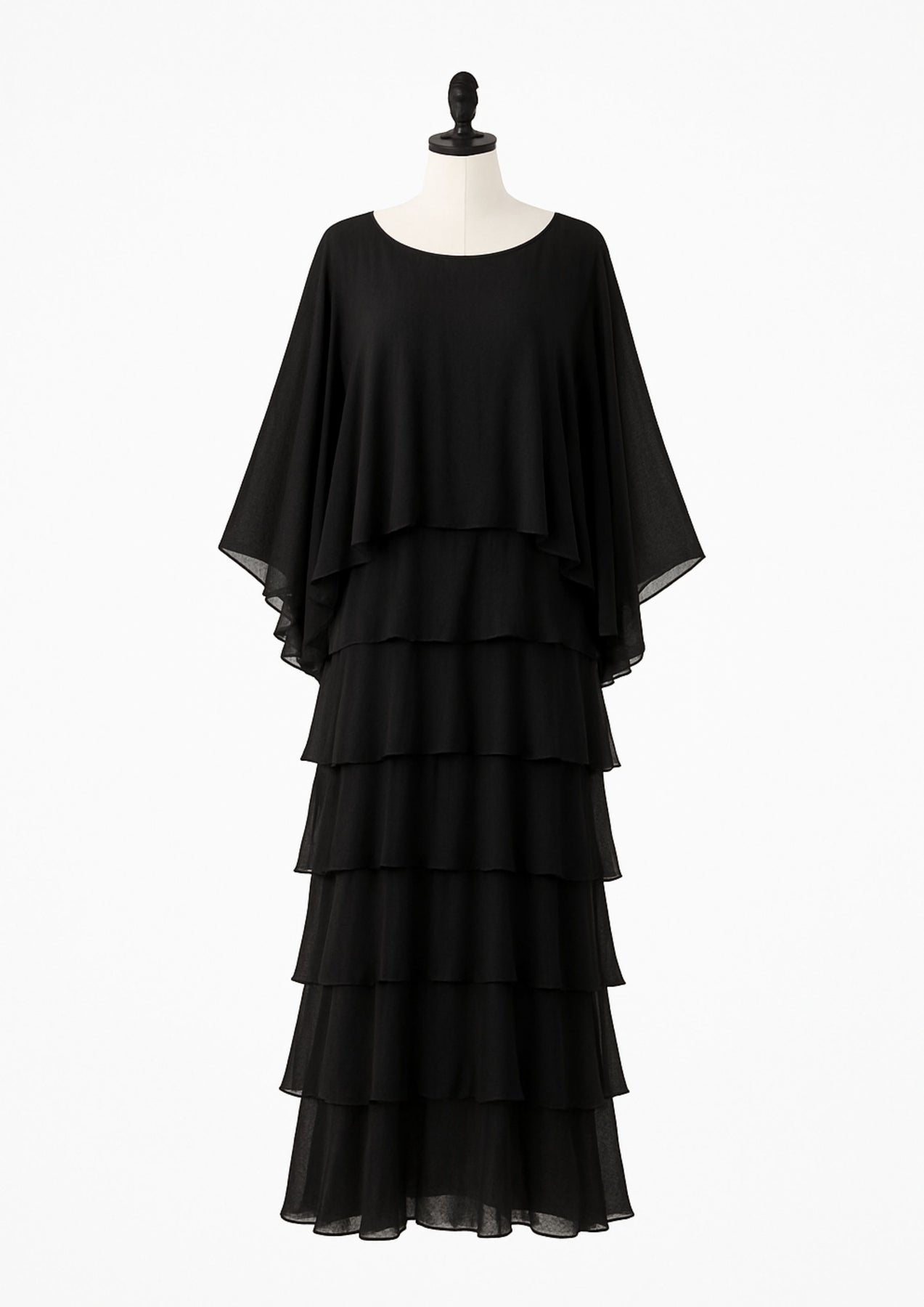 Amara Asymmetrisches Maxi-Kleid mit Lagen und Volants - Schwarz