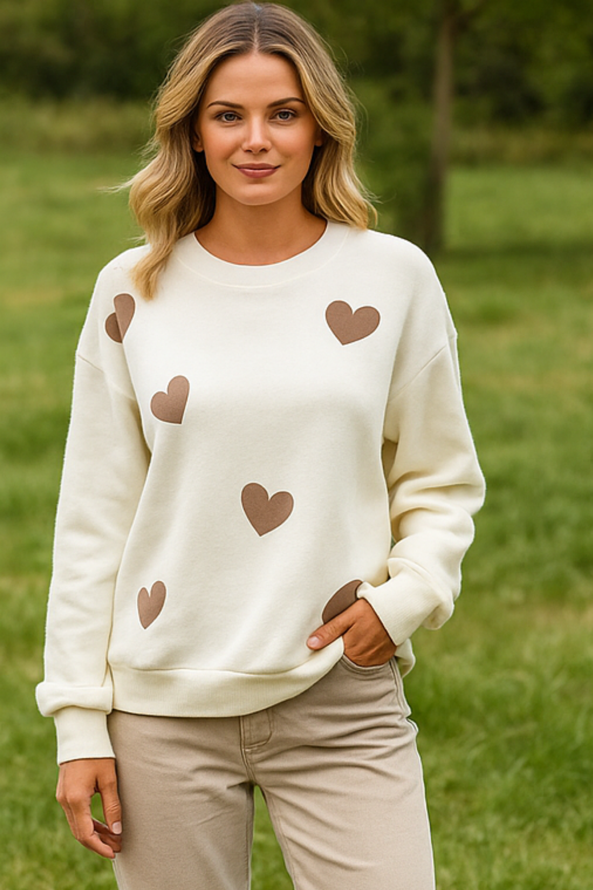 Der Maya Pullover bringt Wärme, Komfort und einen Hauch Verspieltheit in deinen Alltag. Mit seiner soften Baumwollmischung und dem einzigartigen Herzchen-Print macht er jedes Outfit gemütlich und charmant.
