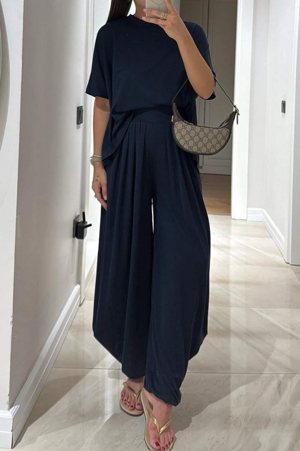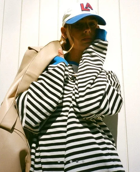Helen Gestreifter Oversize Pullover mit Küstenflair - Blau / Schwarz